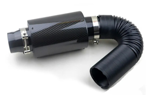 These real carbon fibre cold air intake systems come complete with enclosed air filter, reducers, clamps, mounting brackets and flexible piping to suit. They are a universal product, designed for any vehicle. The body of the main unit measures 180mm x 130mm.