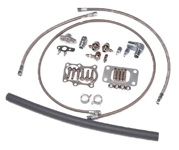 This turbo install kit is designed for the GU TD42 to suit Kinugawa TD05 and TD06 turbos. Supplied as shown.